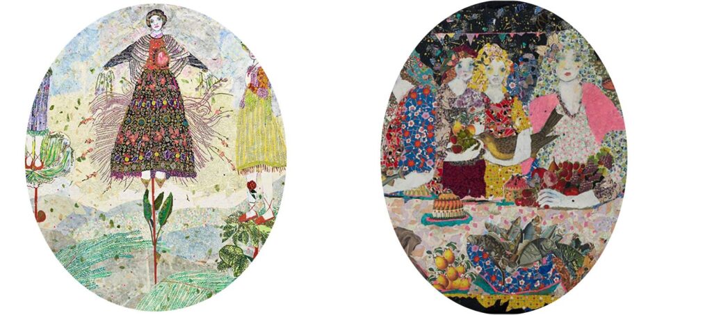 Los delicados collages a gran escala hechos de capas de papel japonés de Maria Berrio dan un lugar importante a la representación de las mujeres, con acentos oníricos que cuestiona los acontecimientos actuales. Su obra refleja las conexiones interculturales y la migración global vistas a través del prisma de su propia historia.