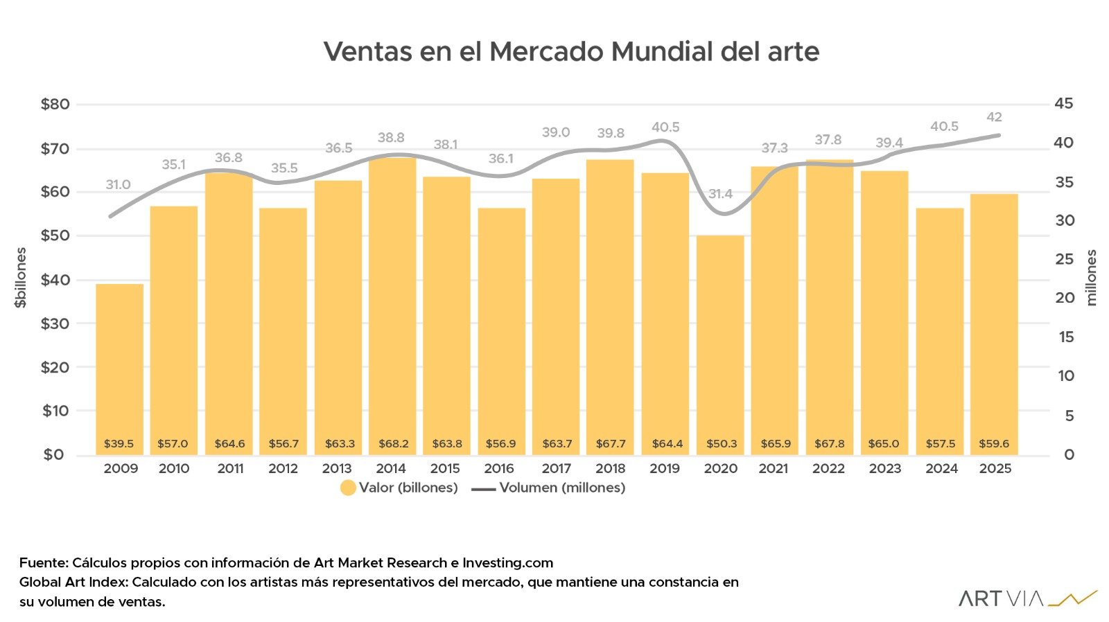 El mercado del arte comenzó 2026 con señales de recuperación tras los sólidos resultados registrados a finales de 2025. Tras dos años de contracción, el mercado mundial creció un 4% interanual, alcanzando un valor estimado de 59.600 millones de dólares.