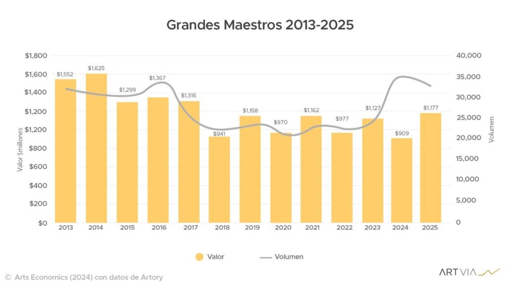 El sector de Grandes Maestros también mostró un fuerte repunte durante 2025. Las ventas crecieron un 30%, alcanzando casi 1.200 millones de dólares.