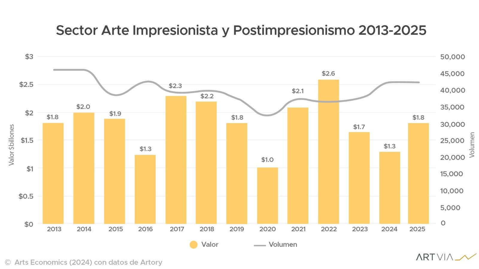 El arte impresionista fue el sector con mejor desempeño en 2025. Las ventas crecieron un 47%, alcanzando aproximadamente 1.800 millones de dólares.